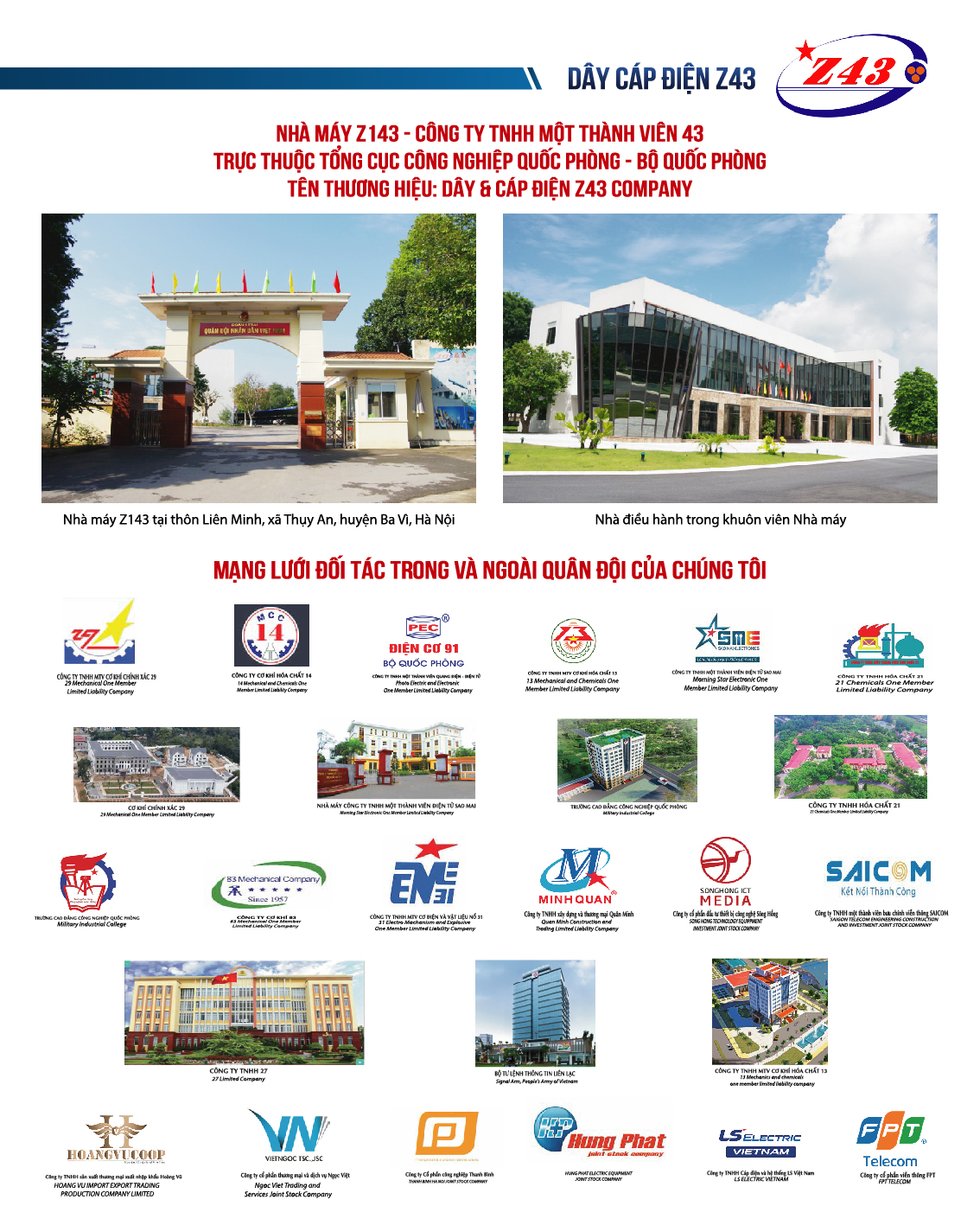 Nhà máy Z43 được thành lập từ năm 1972 với sứ mệnh sản xuất các sản phẩm dây và cáp điện, cáp hạ thế, cáp thông tin, cáp quang… phục vụ quốc phòng và dân sinh.