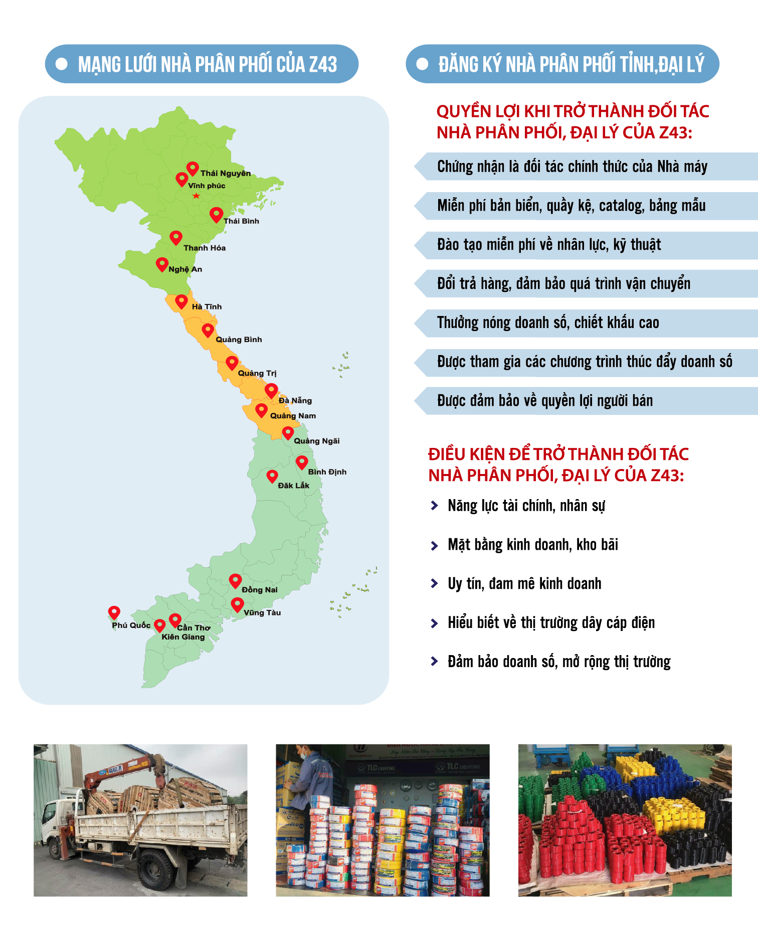 Nhà máy Z43 luôn mong muốn được hợp tác cùng các quý nhà phân phối, đại lý và công trình trên toàn quốc. Cam kết lợi nhuận cao nhất, chính sách tốt nhất cho đối tác.